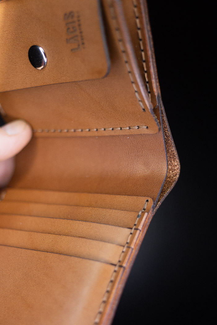 Handstiched, rounded-polished edges.