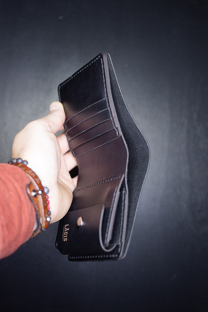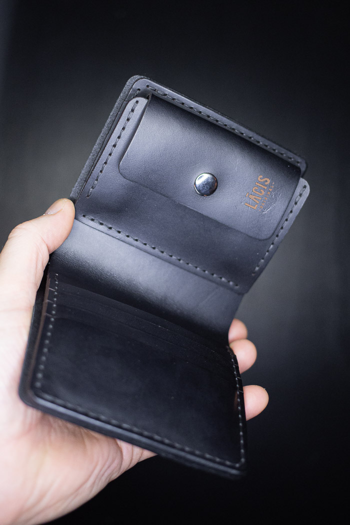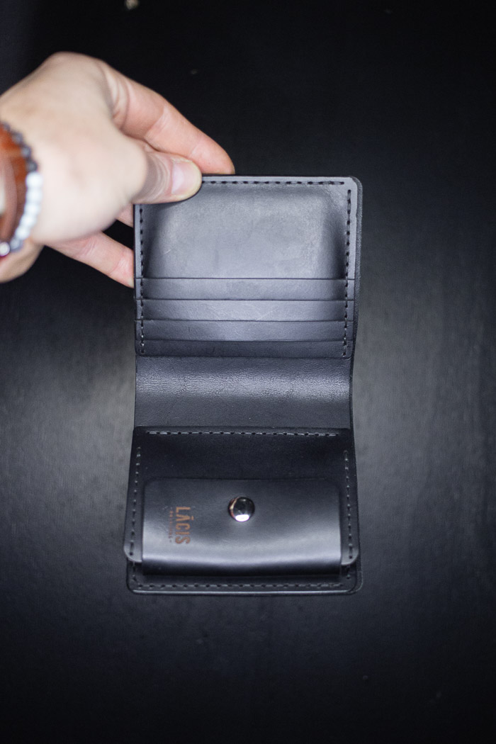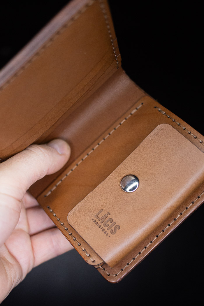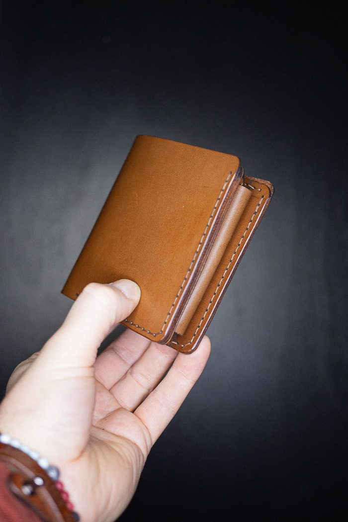Everyday carry wallet. It has three card pockets, one paper money and one hidden compartment.