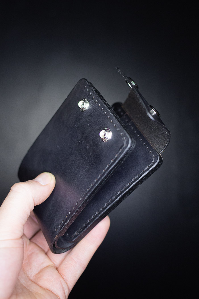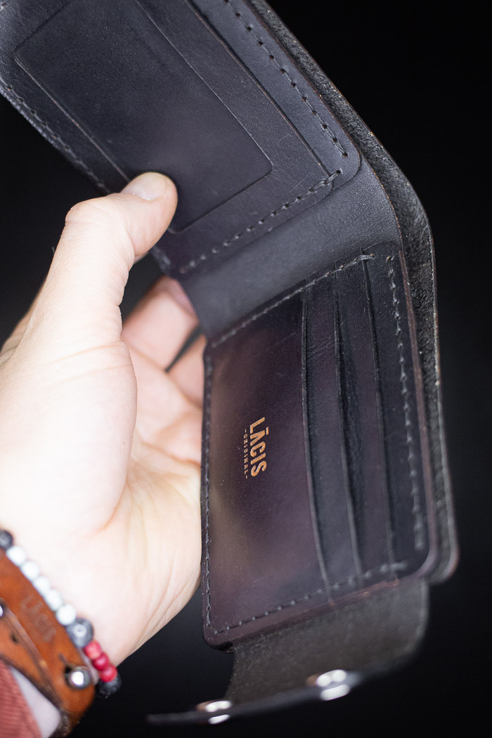 On the back of the wallet there is a designed attachment hole for a chain, the hole itself does not affect the usability of the wallet, therefor it can be ignored completely or utilized for its purpose – your choice. Chains will be purchasable in our shop in near future.